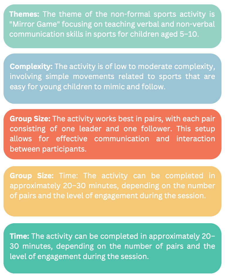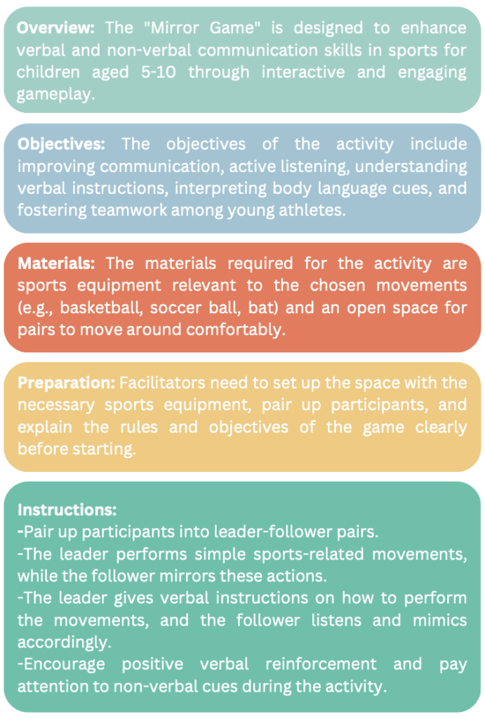Communication in sports, whether verbal or non- verbal, plays a pivotal role in optimizing performance, be it between kids in sports and coaches, among kids playing sports themselves, or even involving spectators who are active participants in the communication process. The significance of communication in sports has been increasingly recognized, with a growing emphasis on understanding body language as a key aspect of effective communication. Kids with DCD, who are already often experiencing the difficulties participating in sports, need a constant verbal and non-verbal support, through active communication with their coaches and co-players. This will empower them to keep trying and excelling in sports. Moreover, considering the challenges they have with performance, good understanding among co-players can help them to reach higher results in any game.